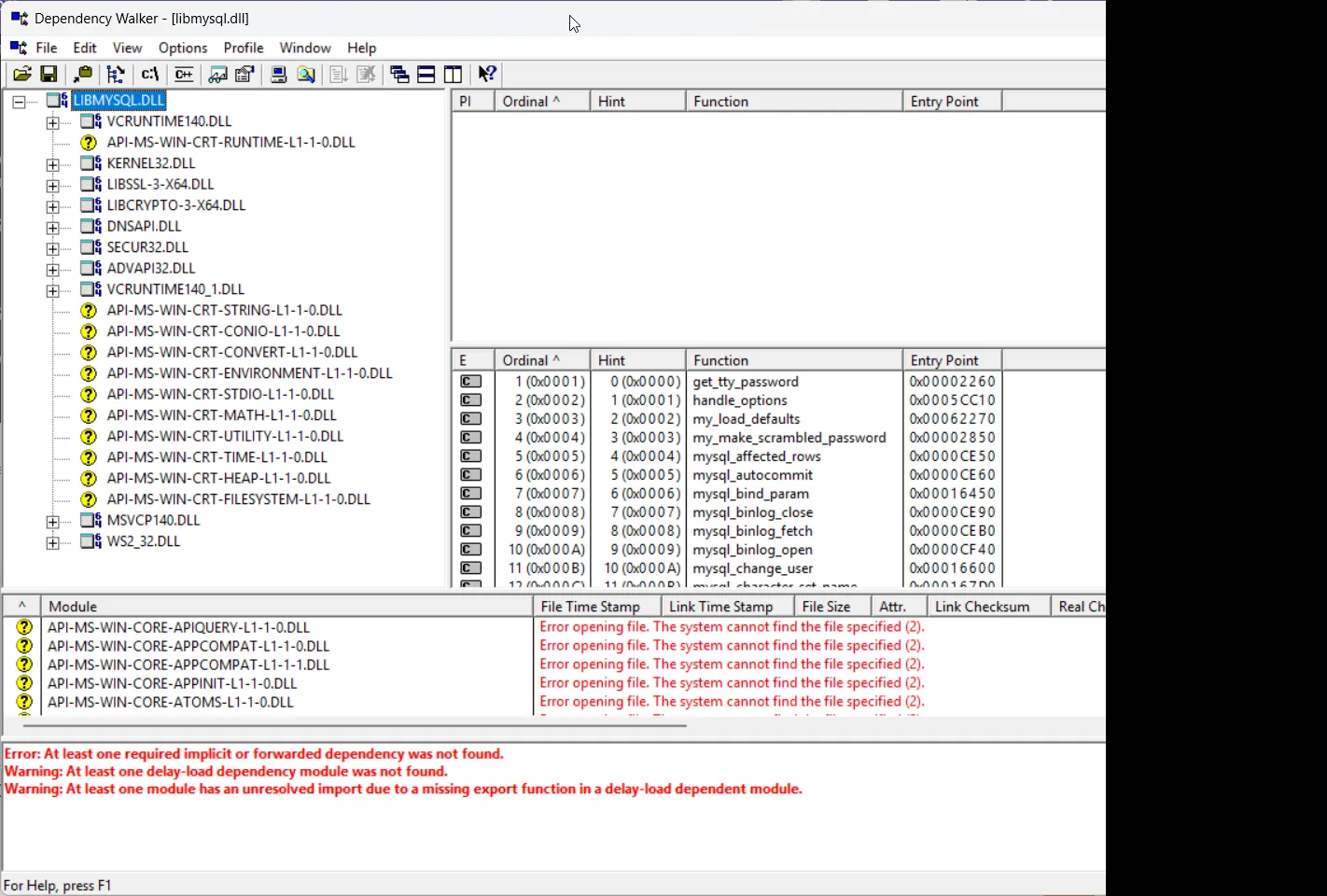 And if you run 'depends' minimise all panes so that you can see all first level dependencies.